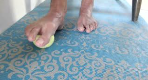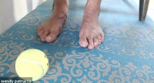 Sit or stand and spread your toes out nice and W I D E!  Use the texture of a yoga mat to help you stick those toes out. Separate your toes using your fingers and hold for up to 60 seconds.  Release and set it up again for 3 sets.